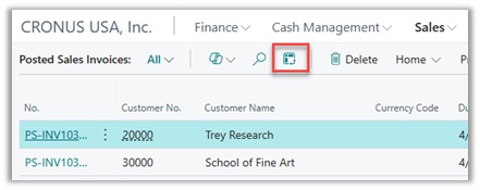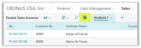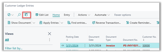 - Navigate to a List Page: Open any supported list page within Business Central, such as Posted Sales Invoices or Item Ledger Entries.