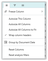- Wrap column headers: On any header, select the menu icon and this option to make headers easy to read when columns are narrow.