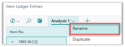 - Save or Share Your View: Save your custom view as a reusable analysis or share it with team members to standardize reporting. Use Rename to name the view with a descriptive name, such as “Items by Type of Transaction.“