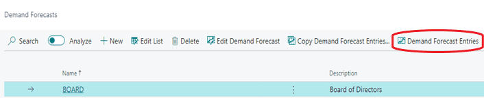 After clicking “Demand Forecasts” within the “Search” window, find the Demand Forecast that you want to update based on the data reviewed in the Power BI service.